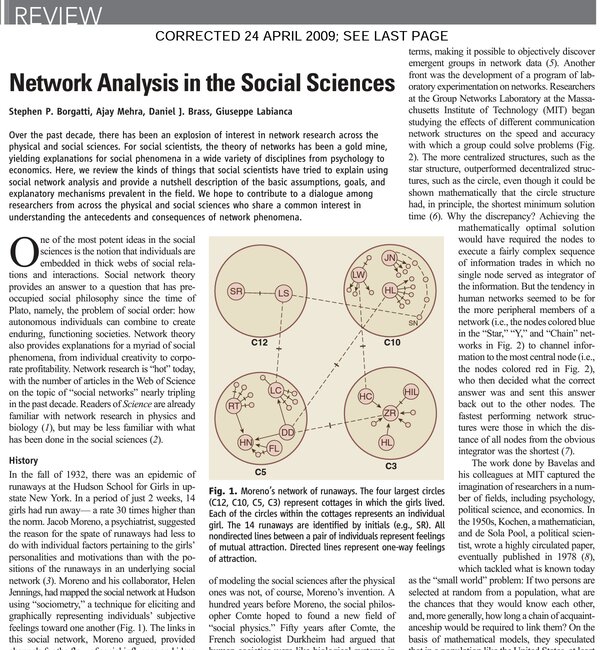 This is a four-page paper that provides an excellent introduction to network analysis methods in the field of social science.