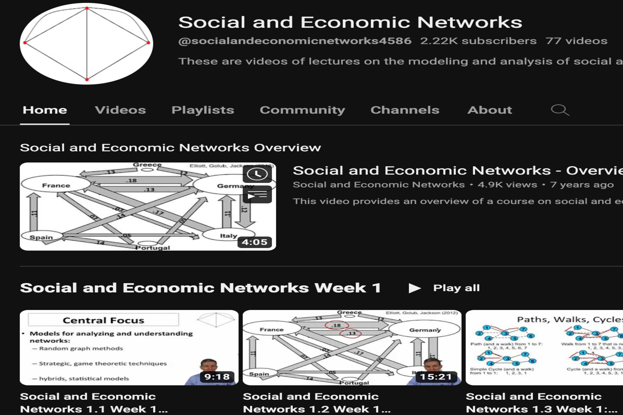 Lecture videos are given by Dr. Matthew O. Jackson, very insightful.